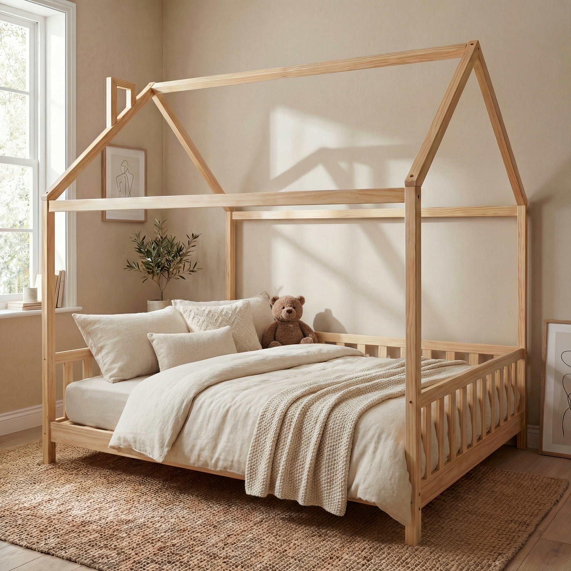 Adding safety and flexibility to the house bed, preventing falls while allowing easy access. They can be attached when needed and removed as your child grows.