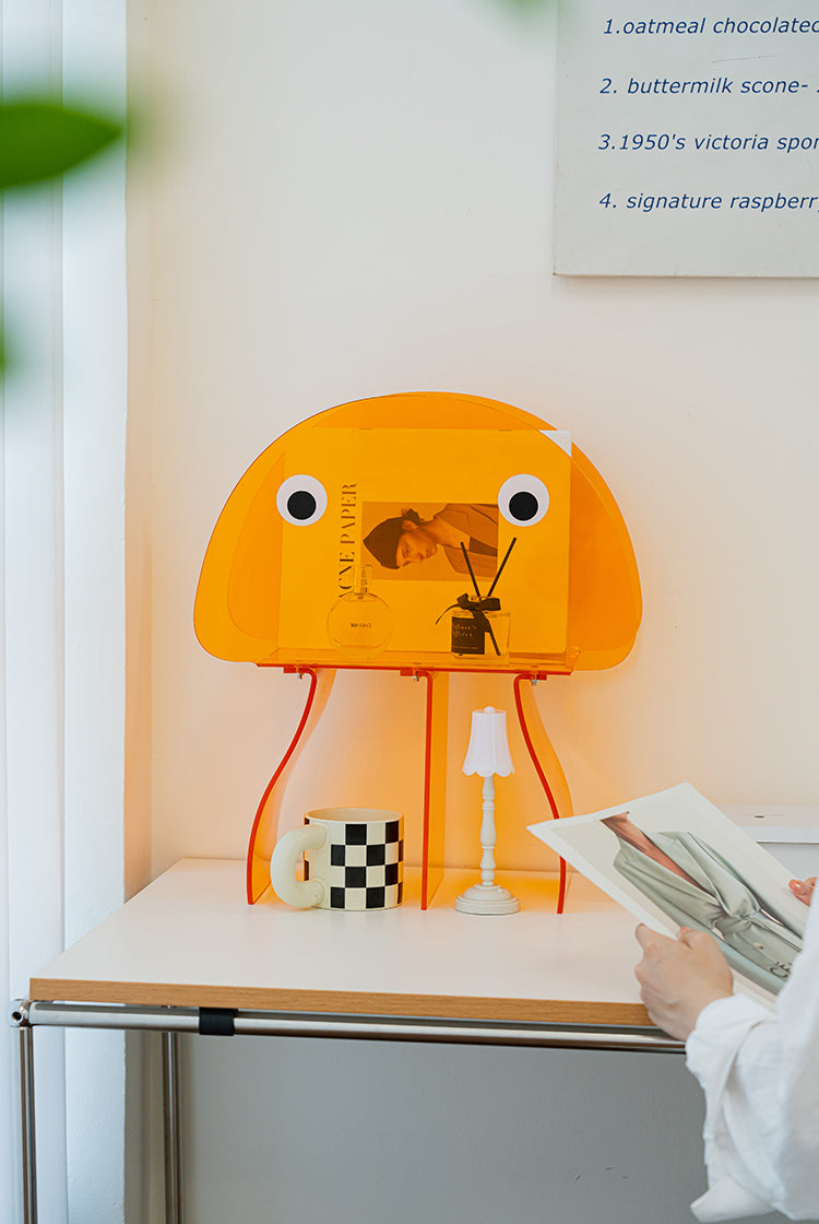 Enhance your home decor with our Jellyfish Acrylic Bookshelf. This unique and stylish bookshelf adds a touch of modern elegance to any living room or office. Crafted from high-quality acrylic, it showcases a transparent design that creates a floating illusion, perfect for showcasing your favorite books or decorative items. Its sturdy construction ensures durability, while its innovative design makes it a conversation starter in any space. Elevate your interior with this functional and visually stunning bookshelf.