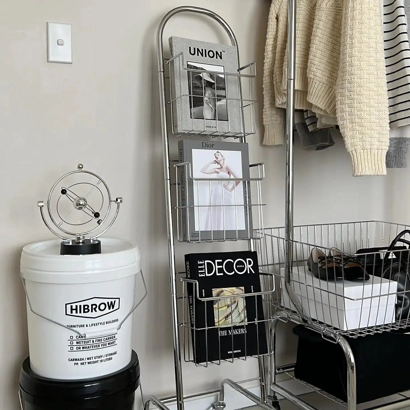 Effortlessly blend function and style with this modern minimalist carbon steel magazine rack. Designed for offices, living rooms, or waiting areas, it combines sleek aesthetics with practical storage. Equipped with wheels, this rack is easy to move and ensures your magazines, brochures, or books are organized and accessible.
