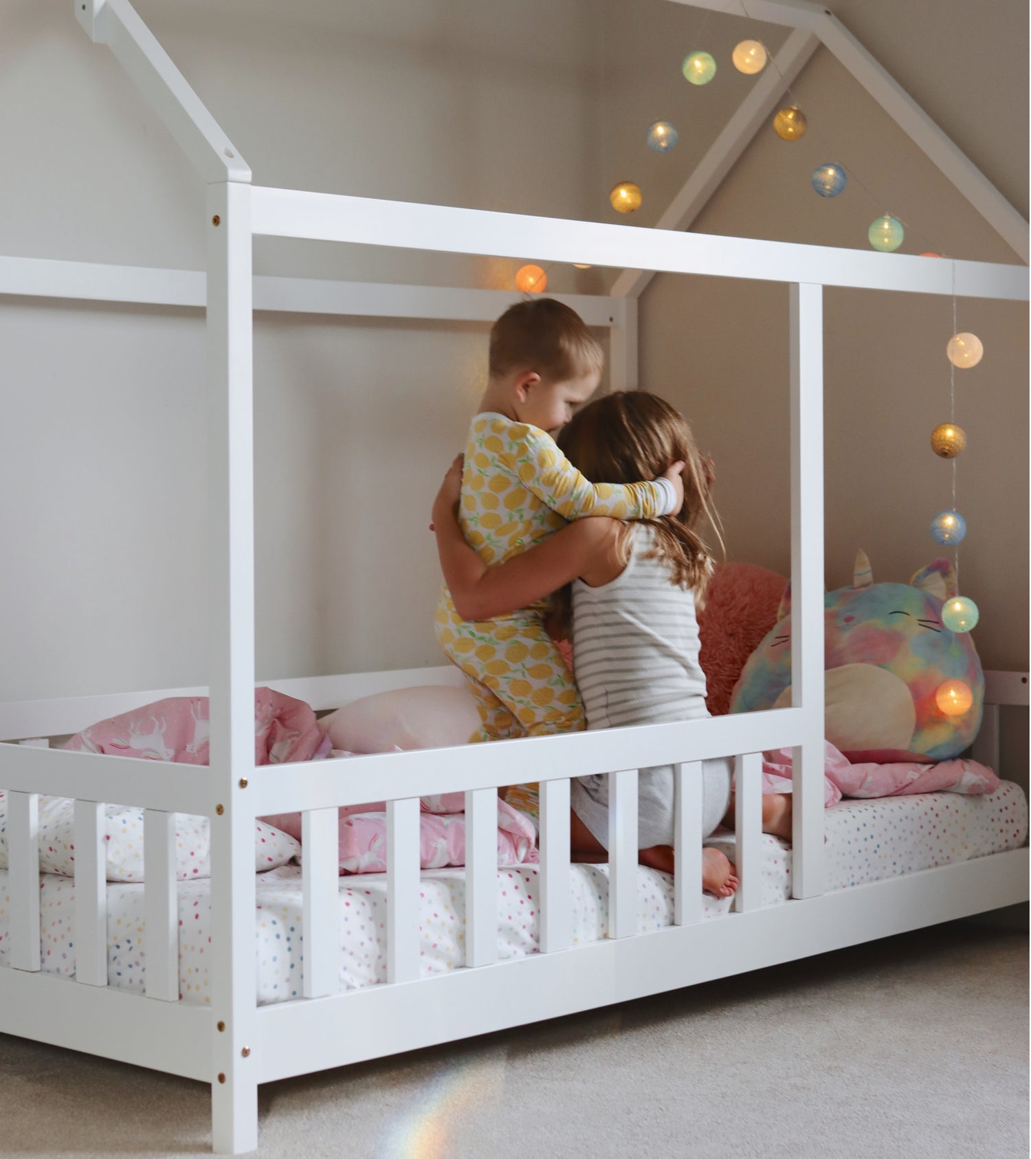 Adding safety and flexibility to the house bed, preventing falls while allowing easy access. They can be attached when needed and removed as your child grows.