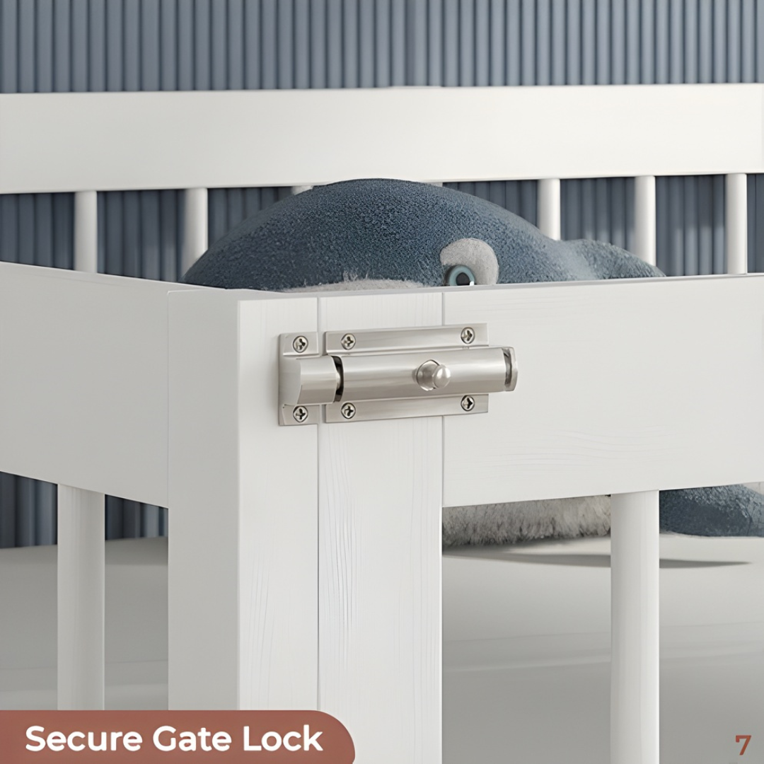 A cozy design with a removable and interchangeable gate that can be easily positioned on both sides for added comfort and convenience.