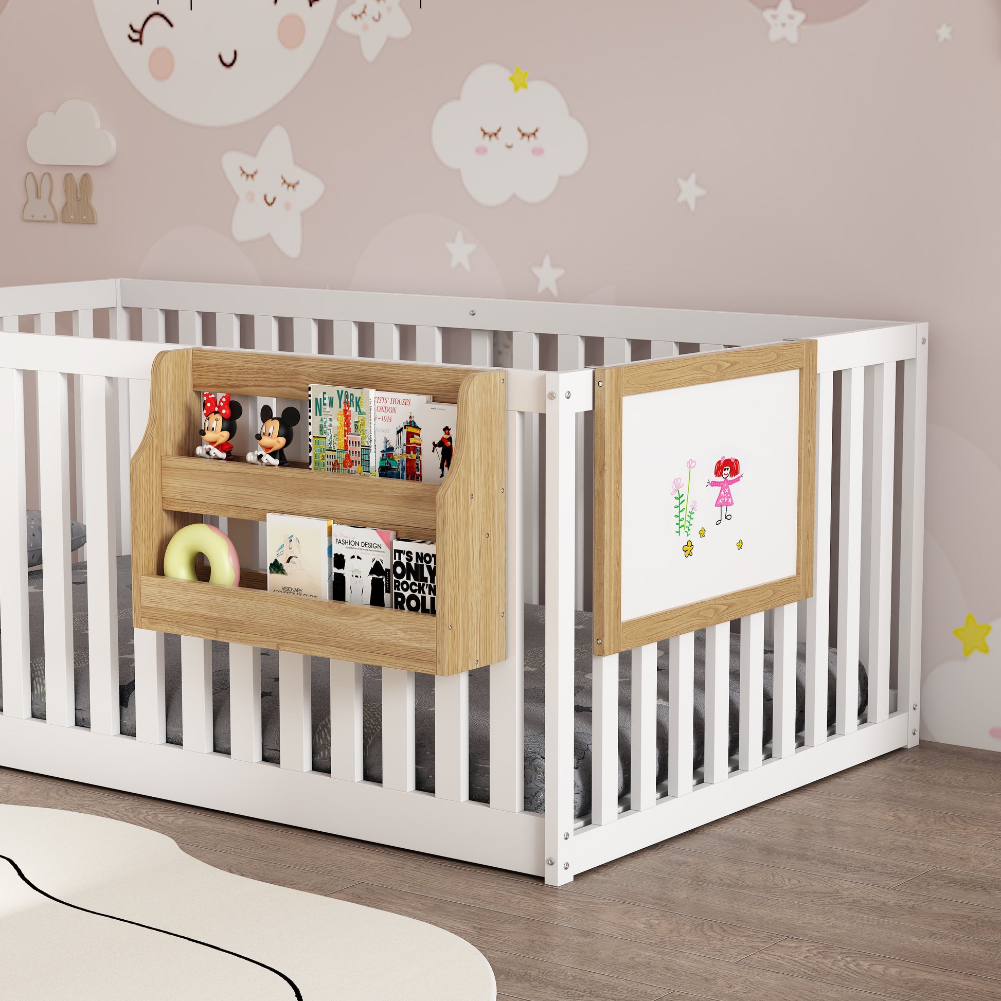 The Hanging Bookshelf pairs perfectly with our Floor Beds for a complete Montessori-inspired look, or stands beautifully on its own as a cute and practical addition to any room. With multiple cubbies and cloth drawers, it offers both open display and hidden storage options to suit your needs.