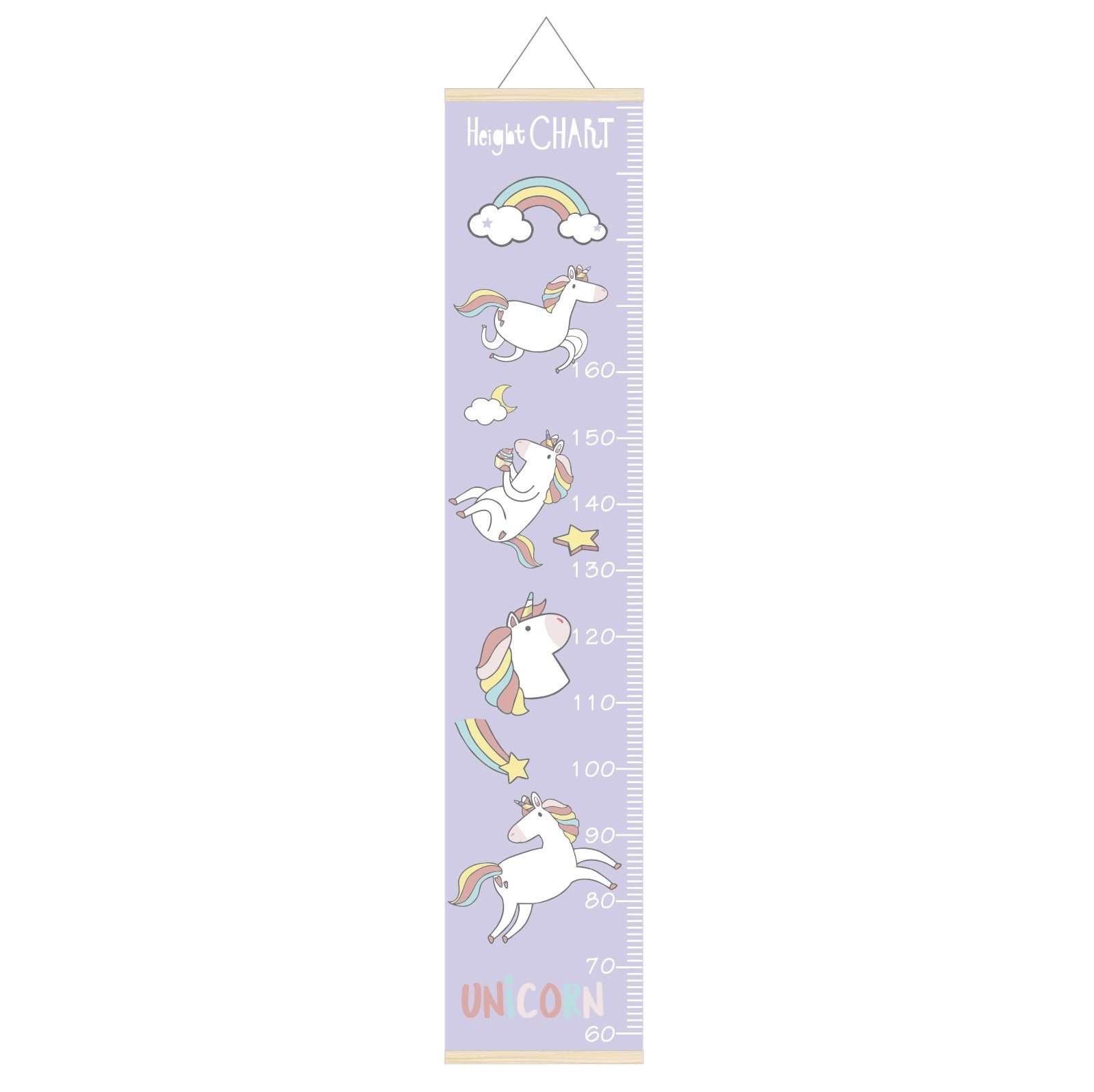 It measures your child’s height from 1'9" to 6ft. Simply hang it 60 cm from the floor for accurate tracking. A matching oak poster hanger is included for easy and stylish hanging.